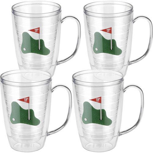 After your next round, gulp down a cold drink in one of the 19th Hole Tumblers from Golf Gifts & Gallery. The 16-oz acrylic golf theme mug is double insulated.